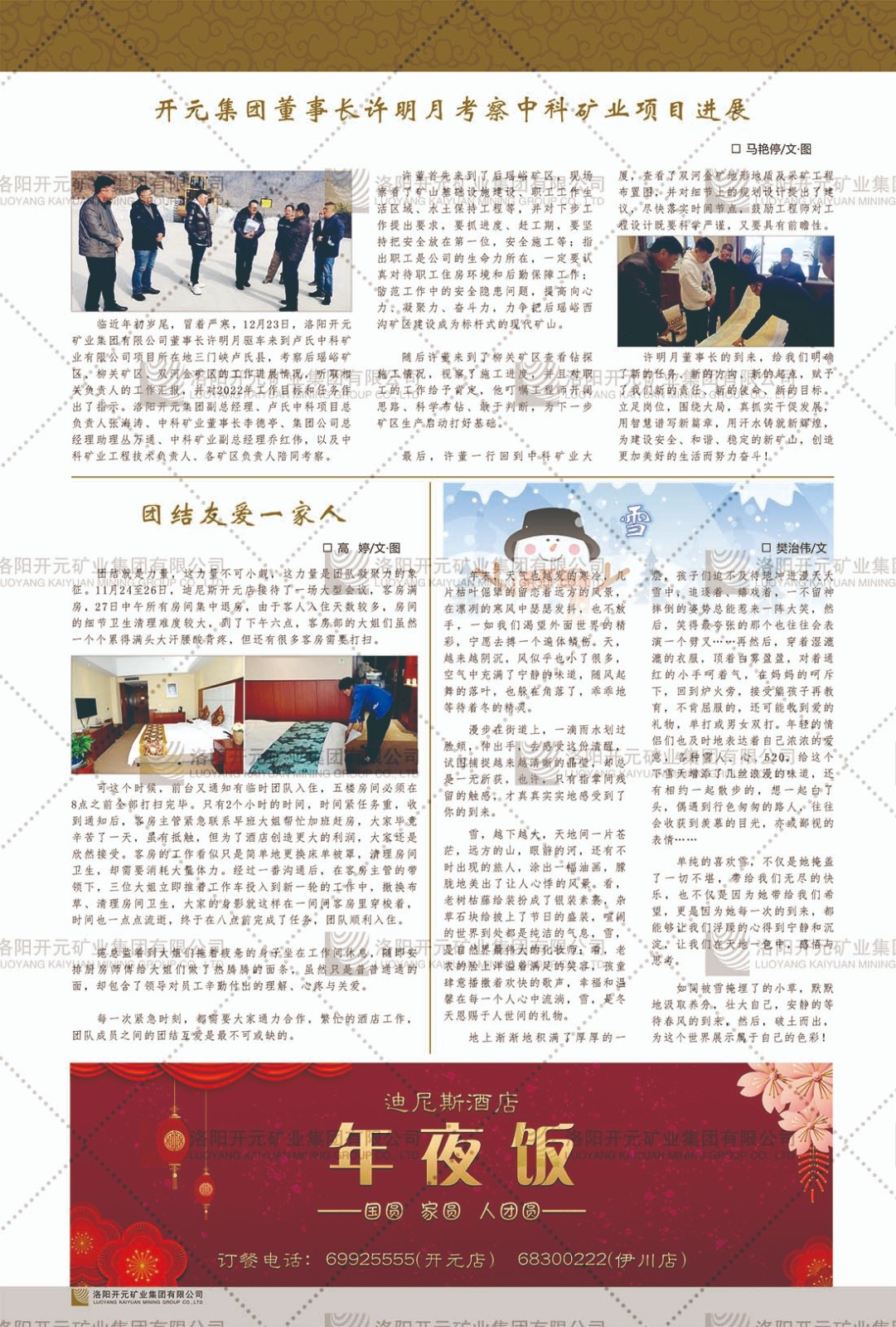 洛陽開元礦業(yè)集團有限公司簡介洛陽開元礦業(yè)集團有限公司,始成立于2006年,位于洛陽市開元大道269號。集團旗下共有十余家全資子公司,業(yè)務涉及有色金屬礦山開發(fā)、礦產品購銷與進出口貿易、房地產開發(fā)、文化藝術、企業(yè)管理與咨詢、資本投資等多個領域。2024年,集團公司銷售總額達7.8億元。民建河南省委委員、民建河南省委企業(yè)委副主任、民建洛陽市委委員、企業(yè)委主任、洛陽民建企業(yè)家協(xié)會會長許明月是公司創(chuàng)始人,現(xiàn)任洛陽開元礦業(yè)集團有限公司董事長。在礦業(yè)領域,洛陽開元礦業(yè)集團擁有多家實力雄厚的子公司:貴州開元礦業(yè)有限公司探、采礦權面積共11.33平方公里;興??h銅鑫礦業(yè)有限公司探礦權面積8.76平方公里,礦山資源潛力巨大;2021年,開元集團與盧氏中科礦業(yè)有限公司開展戰(zhàn)略合作。盧氏中科礦業(yè)有限公司專注于有色金屬的浮選、加工和銷售,擁有強大的技術支撐平臺,是集探、采、選、冶、研為一體的中大型綜合礦業(yè)企業(yè)。目前,盧氏中科王家河1000噸選礦廠已成功投產,雙河金礦、柳關欒盧鉛鋅礦相繼順利開工,樓房銀礦與圪老灣鉛鋅礦的深部探礦重大突破,標志著礦山版圖取得重大進展,為開元集團后續(xù)發(fā)展奠定了堅實基礎。在文化傳媒領域,洛陽市明月美術館通過豐富多樣的藝術展覽、學術研討和公共教育活動,努力打造一個集展覽、交流、教育、研究為一體的綜合性藝術平臺。此外,在金融投資領域,開元集團旗下的北京明峰資本管理有限公司專注于投資具有高增長潛力的優(yōu)秀企業(yè),特別是高科技、新能源、環(huán)保等新興產業(yè),為客戶提供個性化的資產配置服務。在做好企業(yè)經營的同時,開元集團始終不忘企業(yè)的社會責任和家國情懷,以突出的愛心公益事跡,開展了一系列公益慈善活動:“民建林”公益事業(yè)通過“思源基金”“幫幫公益”線上公益平臺,與眾多愛心人士籌措資金20余萬元;資助541名貧困大學生共計270余萬元,推進“數(shù)字助力——河南AI人才培養(yǎng)”;捐款10萬元,馳援京津冀、黑龍江洪水地質災害……公司于2017年底被洛陽市慈善總會評為“洛陽慈善風云榜——十大愛心集體”。洛陽開元礦業(yè)集團有限公司秉承持續(xù)發(fā)展理念,憑借多年來良好的企業(yè)信譽與經營業(yè)績,與全國多家企業(yè)建立了良好合作關系,受到社會各界的一致好評,多次榮獲“納稅標兵”“先進企業(yè)”“招商引資模范企業(yè)”等榮譽稱號?;赝麃頃r路,開元人勠力同心,以“闖”的精神和“創(chuàng)”的勁頭,一路披荊斬棘,踏過千山萬水;展望新未來,開元人凝心聚力,不執(zhí)于“舊”,無畏于“新”,秉承“勇于跨越,追求卓越”的企業(yè)精神,乘著國家高質量發(fā)展新征程的東風,跨過高山,越過大海,向著集團多元化、國際化的目標,逐夢遠航,跨越前行!