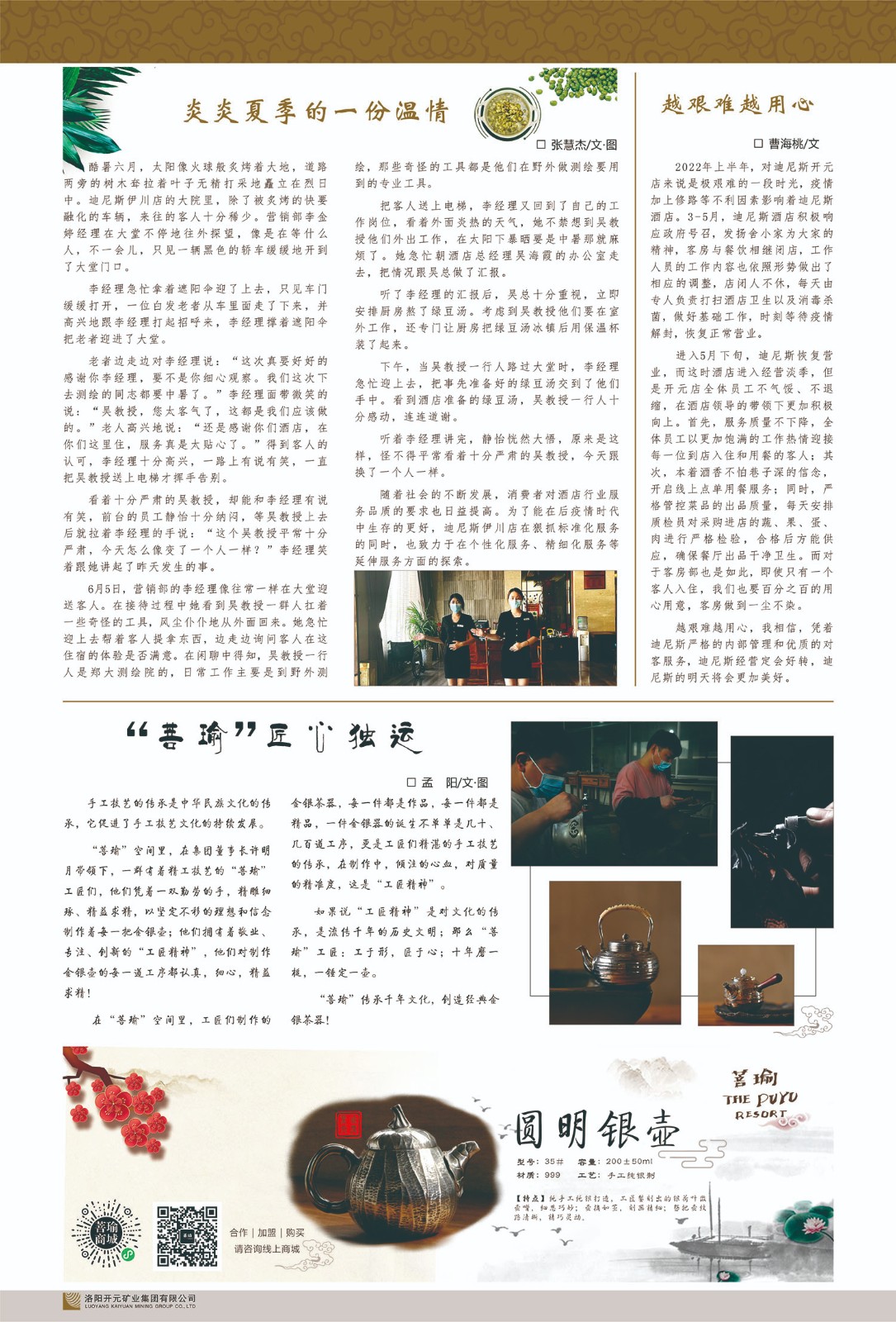 洛陽開元礦業(yè)集團(tuán)有限公司簡介洛陽開元礦業(yè)集團(tuán)有限公司,始成立于2006年,位于洛陽市開元大道269號。集團(tuán)旗下共有十余家全資子公司,業(yè)務(wù)涉及有色金屬礦山開發(fā)、礦產(chǎn)品購銷與進(jìn)出口貿(mào)易、房地產(chǎn)開發(fā)、文化藝術(shù)、企業(yè)管理與咨詢、資本投資等多個領(lǐng)域。2024年,集團(tuán)公司銷售總額達(dá)7.8億元。民建河南省委委員、民建河南省委企業(yè)委副主任、民建洛陽市委委員、企業(yè)委主任、洛陽民建企業(yè)家協(xié)會會長許明月是公司創(chuàng)始人,現(xiàn)任洛陽開元礦業(yè)集團(tuán)有限公司董事長。在礦業(yè)領(lǐng)域,洛陽開元礦業(yè)集團(tuán)擁有多家實(shí)力雄厚的子公司:貴州開元礦業(yè)有限公司探、采礦權(quán)面積共11.33平方公里;興海縣銅鑫礦業(yè)有限公司探礦權(quán)面積8.76平方公里,礦山資源潛力巨大;2021年,開元集團(tuán)與盧氏中科礦業(yè)有限公司開展戰(zhàn)略合作。盧氏中科礦業(yè)有限公司專注于有色金屬的浮選、加工和銷售,擁有強(qiáng)大的技術(shù)支撐平臺,是集探、采、選、冶、研為一體的中大型綜合礦業(yè)企業(yè)。目前,盧氏中科王家河1000噸選礦廠已成功投產(chǎn),雙河金礦、柳關(guān)欒盧鉛鋅礦相繼順利開工,樓房銀礦與圪老灣鉛鋅礦的深部探礦重大突破,標(biāo)志著礦山版圖取得重大進(jìn)展,為開元集團(tuán)后續(xù)發(fā)展奠定了堅(jiān)實(shí)基礎(chǔ)。在文化傳媒領(lǐng)域,洛陽市明月美術(shù)館通過豐富多樣的藝術(shù)展覽、學(xué)術(shù)研討和公共教育活動,努力打造一個集展覽、交流、教育、研究為一體的綜合性藝術(shù)平臺。此外,在金融投資領(lǐng)域,開元集團(tuán)旗下的北京明峰資本管理有限公司專注于投資具有高增長潛力的優(yōu)秀企業(yè),特別是高科技、新能源、環(huán)保等新興產(chǎn)業(yè),為客戶提供個性化的資產(chǎn)配置服務(wù)。在做好企業(yè)經(jīng)營的同時,開元集團(tuán)始終不忘企業(yè)的社會責(zé)任和家國情懷,以突出的愛心公益事跡,開展了一系列公益慈善活動:“民建林”公益事業(yè)通過“思源基金”“幫幫公益”線上公益平臺,與眾多愛心人士籌措資金20余萬元;資助541名貧困大學(xué)生共計(jì)270余萬元,推進(jìn)“數(shù)字助力——河南AI人才培養(yǎng)”;捐款10萬元,馳援京津冀、黑龍江洪水地質(zhì)災(zāi)害……公司于2017年底被洛陽市慈善總會評為“洛陽慈善風(fēng)云榜——十大愛心集體”。洛陽開元礦業(yè)集團(tuán)有限公司秉承持續(xù)發(fā)展理念,憑借多年來良好的企業(yè)信譽(yù)與經(jīng)營業(yè)績,與全國多家企業(yè)建立了良好合作關(guān)系,受到社會各界的一致好評,多次榮獲“納稅標(biāo)兵”“先進(jìn)企業(yè)”“招商引資模范企業(yè)”等榮譽(yù)稱號。回望來時路,開元人勠力同心,以“闖”的精神和“創(chuàng)”的勁頭,一路披荊斬棘,踏過千山萬水;展望新未來,開元人凝心聚力,不執(zhí)于“舊”,無畏于“新”,秉承“勇于跨越,追求卓越”的企業(yè)精神,乘著國家高質(zhì)量發(fā)展新征程的東風(fēng),跨過高山,越過大海,向著集團(tuán)多元化、國際化的目標(biāo),逐夢遠(yuǎn)航,跨越前行!